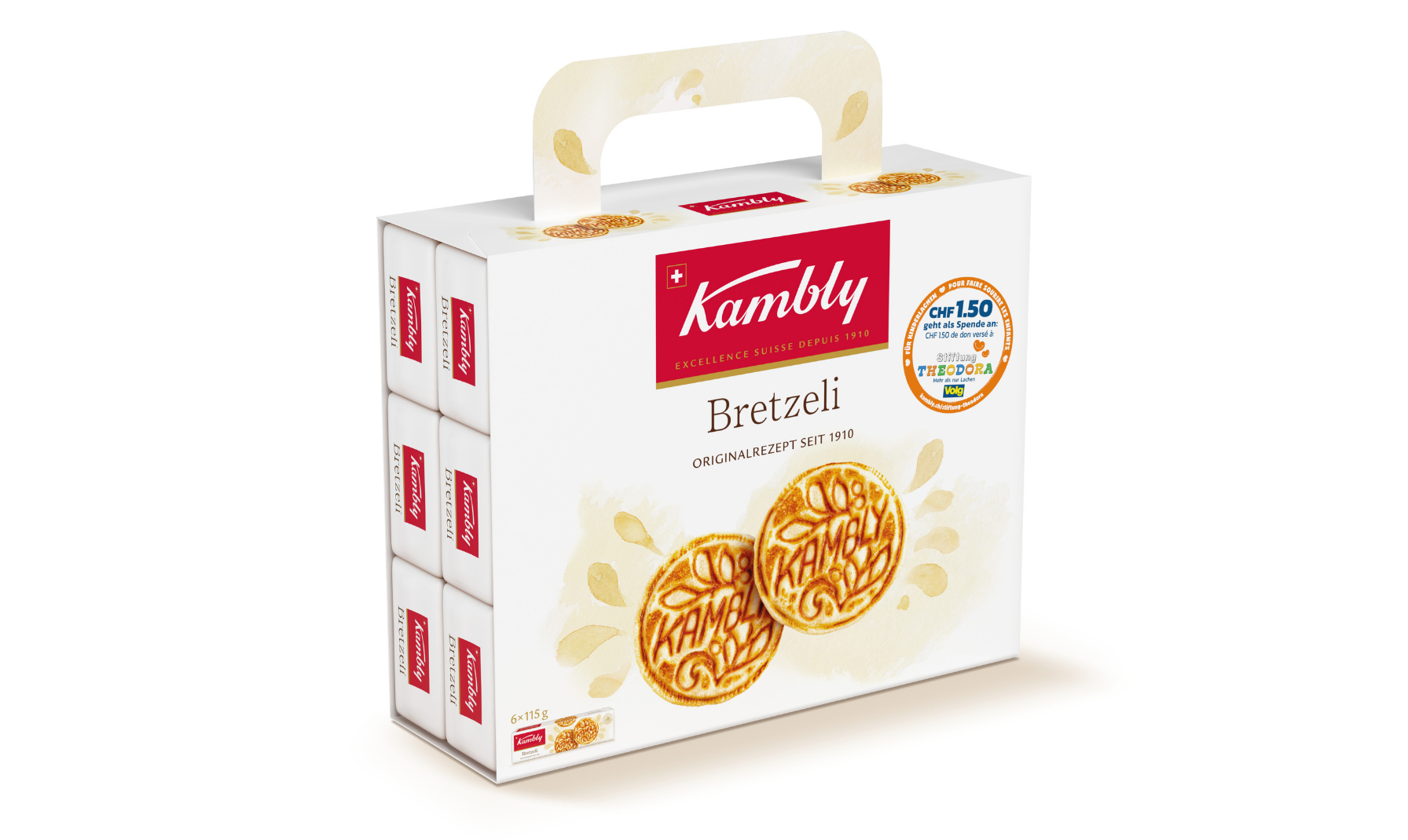 Kambly liegt das Wohl von Kindern besonders am Herzen. Darum freuen wir uns, gemeinsam mit Volg die Stiftung Theodora zu unterstützen. Pro verkaufter Bretzeli Koffer geht CHF 1.50 als Spende an die Stiftung Theodora.